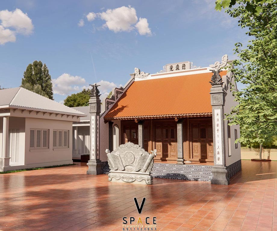 3. Phối cảnh 3D dự án thiết kế nhà thờ họ 3 gian có cuốn thư đá tại Đông Tiền Hải Hưng Yên